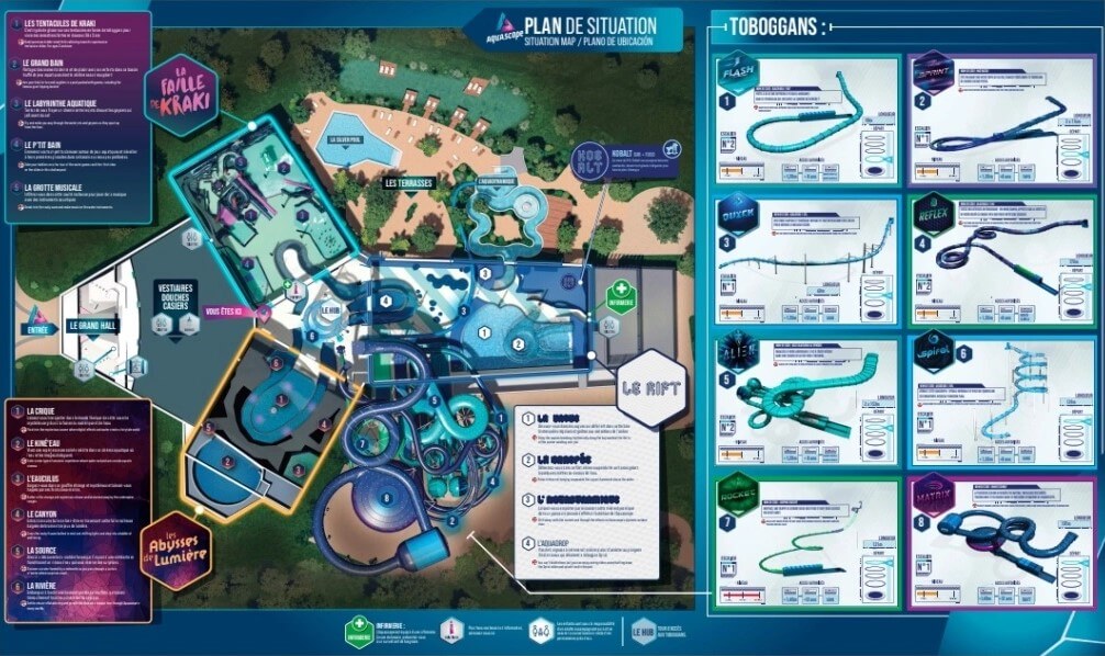 - Matrix : un toboggan unique au monde qui repousse les limites de l’adrénaline ! Dévalez à toute vitesse les 187 mètres de cette incroyable piste à bouées, en solitaire ou à plusieurs. Sensations garanties !