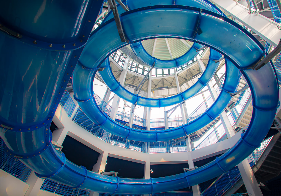 - La Spirale : lancez-vous dans une descente vertigineuse de 18 mètres de haut ! Ce toboggan unique en France vous fera vivre des sensations fortes grâce à ses virages serrés et sa chute libre finale dans un bassin de 1,80 mètre de profondeur.