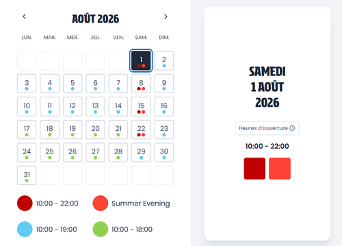 - Mai : les jeudis, vendredis, week-ends et le 25