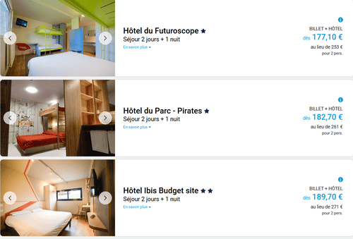Vous pouvez consulter la liste des hôtels au Futuroscope pour mieux faire votre choix.