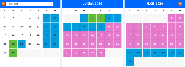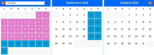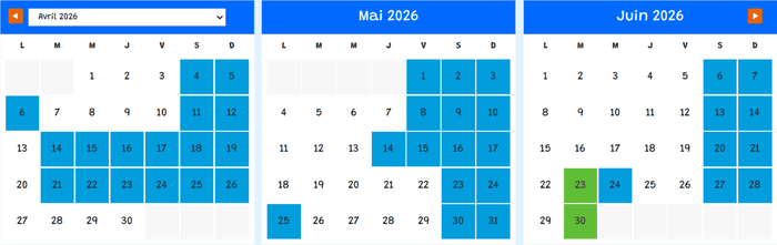 Calendrier d’ouverture 2026