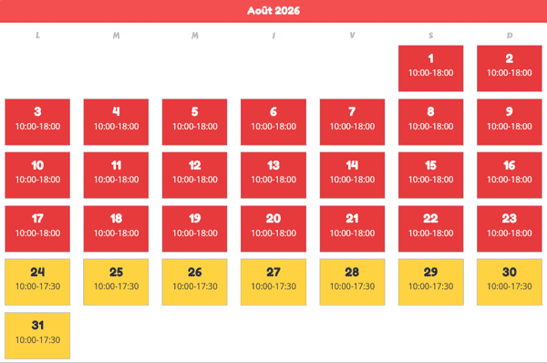 - Septembre : uniquement les week-ends