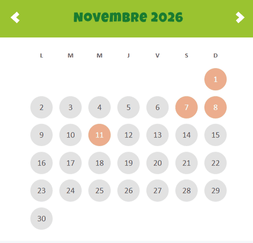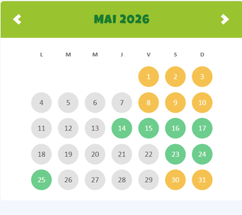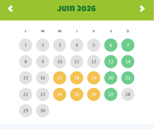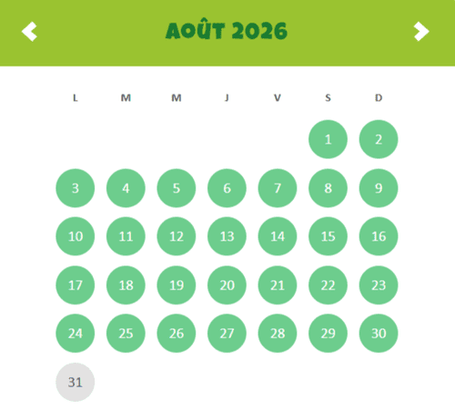 Nigloland accueillera ses visiteurs du du 4 avril au 11 novembre 2026. Nous n’offrons pas de calendrier détaillé de fréquentation quotidienne ou mensuelle pour toute la saison, mais nous vous proposons ci-dessous le calendrier d’ouverture du parc ainsi que nos prévisions mensuelles.