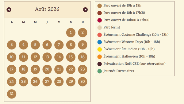 Calendrier et horaires d’ouverture Ok Corral 2026