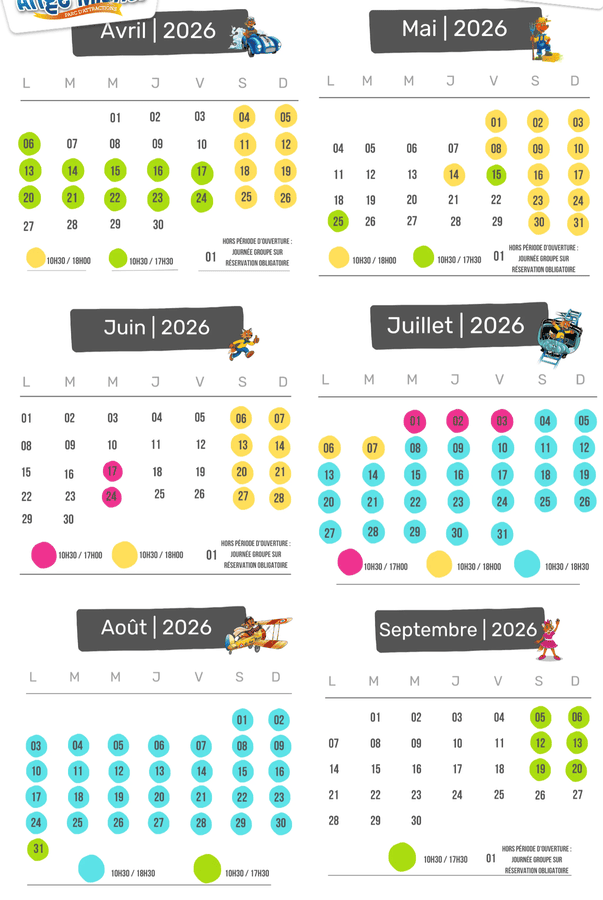 Dates et horaires d’ouverture Parc Ange Michel 2026