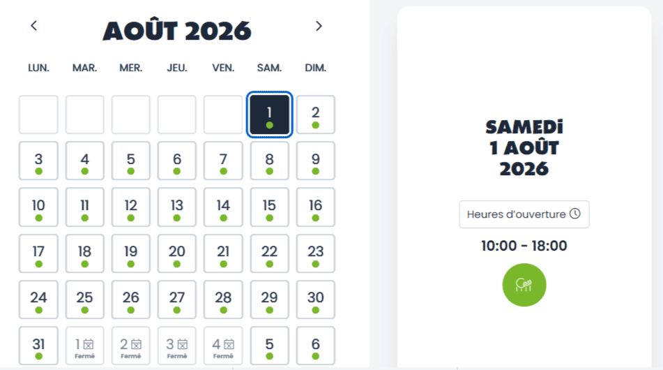 Calendrier d’ouverture 2026